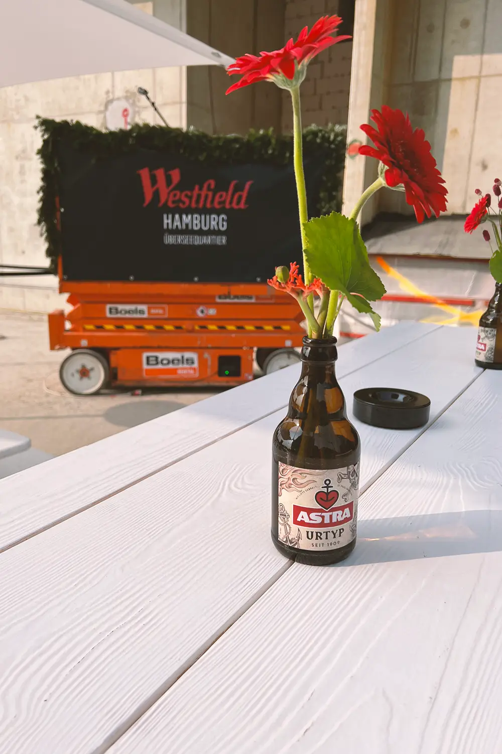 iventos übernahm die komplette Planung und Organisation des Richtfestes für das Bauprojekt Westfield Hamburg Überseequartier. Dies umfasste das gesamte Eventmanagement, die Logistik und die Sicherstellung der nötigen Infrastruktur auf der Baustelle.